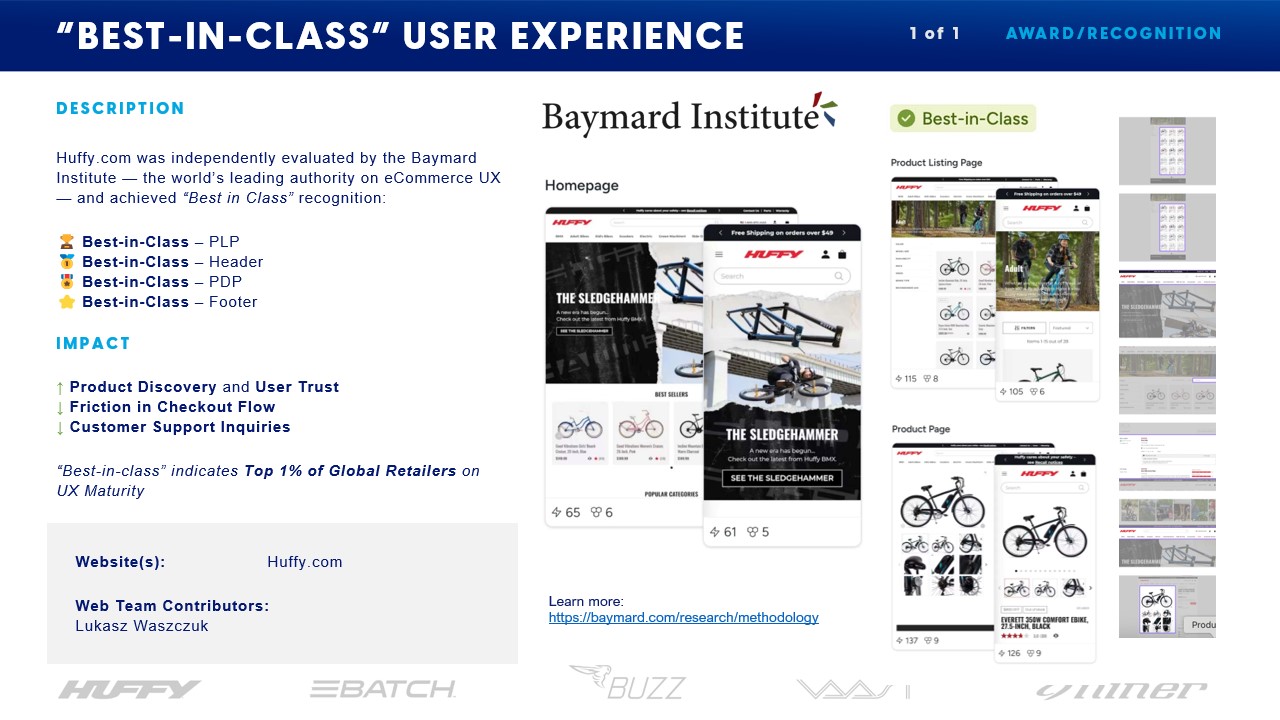 Responsible for overseeing and managing eCommerce functionality and user experience for multiple United Wheels websites. Huffy Bikes (UK, EU & Canada), Royce Union, Buzz Bicycles, Batch Bicycles, Niner Bikes, Vaast Bikes & Allite.